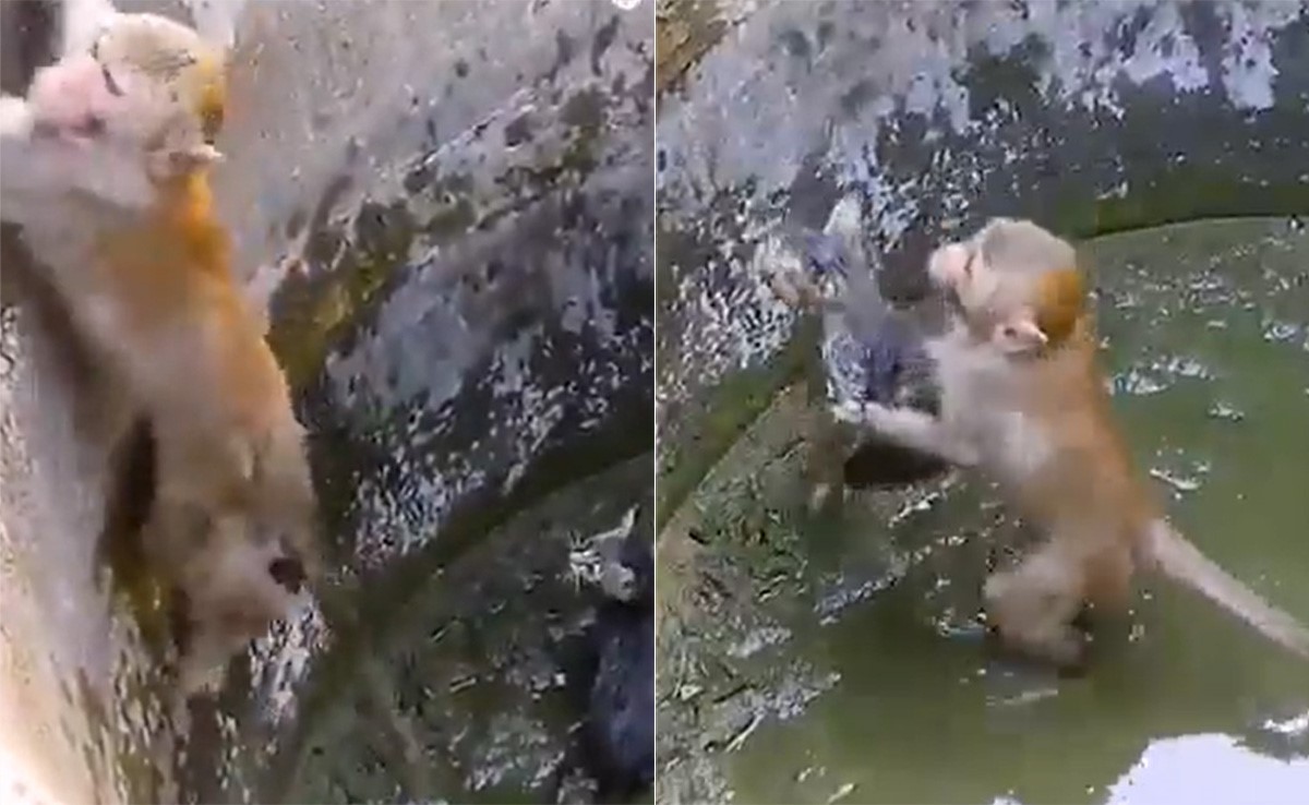 Monkey Saved Kitten: सोशल मीडिया पर एक बहुत ही प्यारा वीडियो वायरल हो रहा है. इस वीडियो में देखा जा सकता है कि एक बंदर अपनी जान जोखिम में डालकर एक बिल्ली के बच्चे को बचा रहा है. वायरल वीडियो में देखा जा सकता है कि कैसे बिल्ली का बच्चा एक कुएं में फंस जाता है. ऐसे में देखा जा सकता है कि बंदर कुएं में उतरता है और बिल्ली के बचा लेता है. सोशल मीडिया पर यह वीडियो वायरल हो रहा है. इस वीडियो को देखने के बाद लोग पूरी तरह दंग हो रहा है. वायरल हो रहे इस वीडियो को देखने के बाद सोशल मीडिया यूज़र्स कमेंट कर रहे हैं.