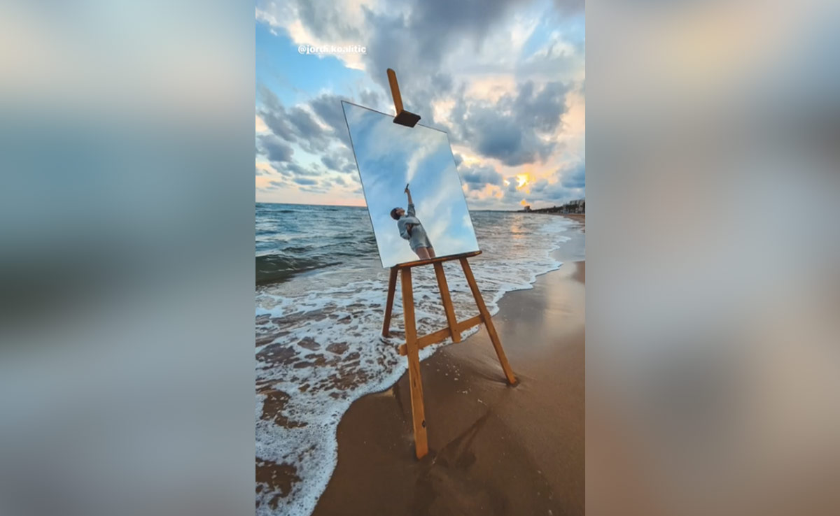 ट्विटर पर Praise The Camera man नाम से बने पेज पर 12 सेकंड का ये शानदार वीडियो शेयर किया गया है. इस वीडियो में आप देखेंगे कि एक शख्स आपको परफेक्ट फोटोग्राफ क्लिक करने का तरीका बताता नजर आ रहा है. इस वीडियो की शुरुआत में ये शख्स हाथ में बड़ा सा कांच लेकर एक स्टैंड पर रखता है. दूसरी ओर एक महिला सीढ़ियों पर खड़े होकर बादलों की तरफ कुछ पेंटिंग करने का इशारा करती नजर आ रही है, फिर ये शख्स फोन के कैमरे से मिरर पर फोकस करते हुए फोटो क्लिक करता है और एकदम परफेक्ट फोटो क्लिक होती है. जिसे देखकर ऐसा लग रहा है कि नज़र आ रही लेडी बादलों पर पेंटिंग कर रही है. यकीनन बिना किसी फिल्टर और आर्टिफिशियल बैकग्राउंड के यह पिक्चर बहुत ही खूबसूरत लग रही है.