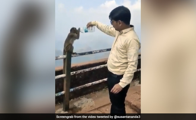 इस चिलचिलाती गर्मी और तपती धूप में गला बहुत जल्दी सूखता है. तापमान इतना ज्यादा है कि थोड़ी देर तक पानी न मिले तो हालत पतली हो जाती है. कूलर, पंखे और एसी में बैठने वाले इंसानों का ये हाल है, तो जरा सोचिए बेचारे मूक जानवरों की क्या हालत होगी. ये जानवर भी गर्मी में कई बार पानी की एक बूंद के लिए तरस जाते हैं. सोशल मीडिया पर इस वीडियो को आईएफएस अधिकारी सुशांत नंदा के ट्विटर हैंडल से शेयर किया गया है, जिसमें एक शख्स एक प्यासे बंदर को पानी पिलाता नजर आ रहा है.