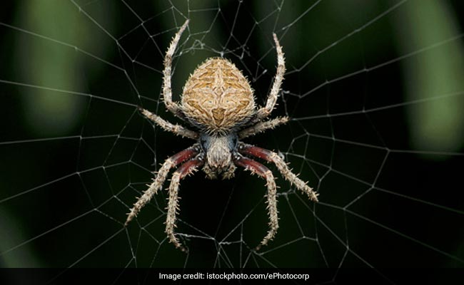 गोल-गोल जाल बुनते बीच में पहुंची मकड़ी