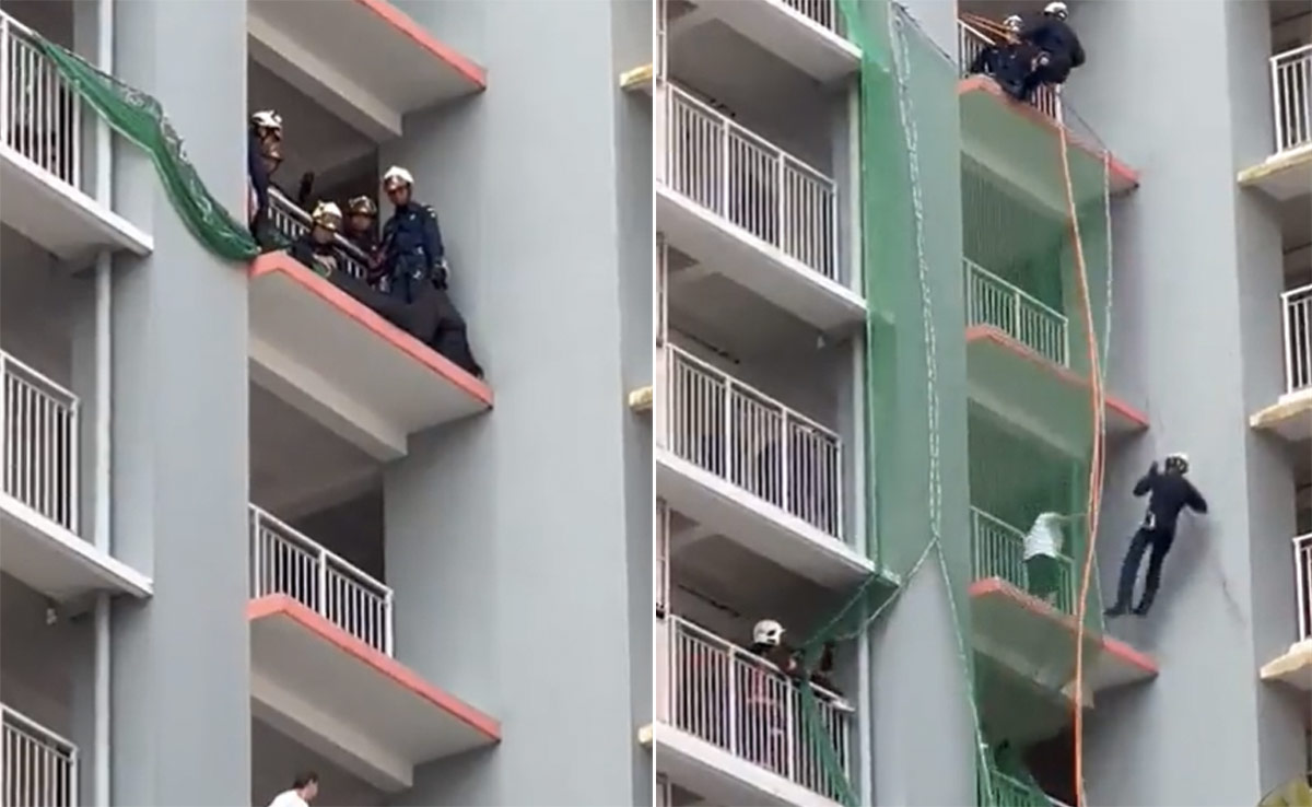 सोशल मीडिया पर वायरल हो रहे वीडियो में देखा जा सकता है कि कैसे महिला बिल्डिंग से कूदने ही वाली थी. तभी ऊपर से राहतकर्मी जाल फेंकते हैं और कूद कर जान बचा लेते हैं. बचावकर्मियों की बहादुरी देखने के बाद लोग तालियों से शुक्रिया अदा करते हैं.