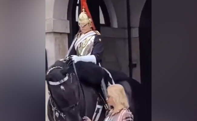 सोशल मीडिया पर रोज़ हज़ारों वीडियो शेयर किए जाते हैं. कुछ वीडियो देखते ही देखते वायरल हो जाते हैं. अभी हाल ही में सोशल मीडिया पर एक वीडियो वायरल हुआ है. वायरल वीडियो में देखा जा सकता है कि रानी का गार्ड (Queen Guard) अपने घोड़े की लगाम को छूने पर पर्यटक पर तेजी से चिल्लाता है. दरअसल, मामला ये है कि एक गार्ड अपने घोड़े पर बैठा था तभी एक महिला सेल्फी के चक्कर में घोड़े के लगाम को छू लेती है. इसके बाद गार्ड जोर से चिल्लाता है, जिससे महिला डर जाती है और दूर हट जाती है.