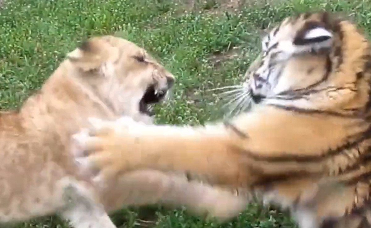 Social Media Viral Video: कहा जाता है कि जंगल का एक अलग ही नियम होता है. यहां कोई किसी का नहीं होता है. जंगल का सबसे ख़तरनाक नियम है कि जो मज़बूत है, वही यहां ज़िंदा रह सकता है. यूं तो सोशल मीडिया पर जंगल से संबंधित कई वीडियो देखने को मिलते रहते हैं. आज भी एक वीडियो वायरल हो रहा है. इस वीडियो को देखने के बाद आफ पूरी तरह से दंग हो जाएंगे. दरअसल, वायरल वीडियो में देखा जा सकता है कि कैसे एक शेर का बच्चा और बाघ का बच्चा आपस में लड़ रहा है. इस वीडियो को देखने के बाद सोशल मीडिया यूज़र्स पूरी तरह से दंग हो रहे हैं.