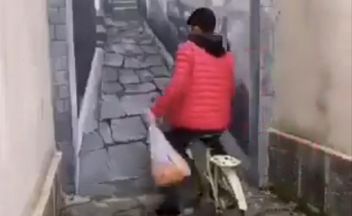इस वीडियो को ट्विटर अकाउंट पर पोस्ट किया गया है और इसे देखने वालों की तादाद लगातार बढ़ती जा रही है. इसे सीसीटीवी इडियट नाम के अकाउंट से शेयर किया गया है. महज चार सैकेंड के वीडियो में थ्रीडी पेंटिंग का नमूना लाइव दिखता है और लोग बस देखते ही जा रहे हैं. वीडियो में आप देखते हैं कि एक शख्स साइकिल पर कुछ सामान हाथ में लिए एक लंबी सी गली से गुजर रहा है. लेकिन ये क्या! गली में जरा सा आगे बढ़ते ही युवक अचानक से साइकिल से गिर पड़ता है. दरअसल हम जिसे लंबी सी गली समझ रहे हैं वो गली नहीं है बल्कि गली के मुहाने पर लगी एक जीवंत थ्रीडी पेंटिंग है. पेंटिंग इतनी रियल है कि साइकिल सवार ही नहीं कोई भी धोखा खा जाएगा. जहां कुछ लोग इस आर्ट की तारीफ करते नहीं थक रहे हैं वहीं कुछ लोगों को पेंटिंग नहीं लेकिन वीडियो फेक लग रहा है. कुछ भी कहा जाए लेकिन वीडियो कुछ देर के लिए हैरान जरूर कर डालता है. यहां तक कि साइकिल सवार के गिरते ही कुछ लोगों के मुंह से उई जरूर निकला होगा.