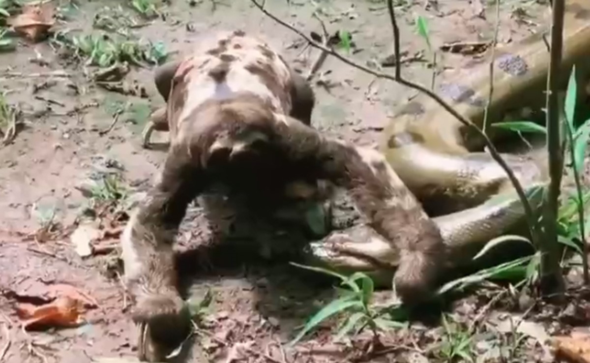 ट्विटर पर ये हैरान कर देने वाला वीडियो काफी वायरल हो रहा है. वीडियो को नेचर इज अमेजिंग नाम के अकाउंट से शेयर किया गया है. इसमें आप देख सकते हैं कि घने जंगल के बीचो बीच स्लॉथ गुजरता हुआ नजर आ रहा है, तभी रास्ते के बीच में एनाकोंडा आ जाता है. अब आप सोच रहे होंगे कि एनाकोंडा के सामने स्लॉथ की क्या बिसात. पर यह वीडियो आपको हैरान करने का क्योंकि रास्ते से गुजर रहा स्लॉथ बेफिक्र होकर न सिर्फ आगे निकल जाता है बल्कि एनाकोंडा के ऊपर हाथ रखकर पल भर के लिए ठहरता भी है. एक बार के लिए एनाकोंडा जैसा भयानक सांप भी अपने ऊपर से गुजरती इस अनोखी चीज को देखकर चौंक कर हट जाता है. एनाकोंडा ऐसा अजगर है जो बकरी से लेकर भैंसे तक को निगल जाए और ऐसा अजगर स्लॉथ से डर गया, इसे देखकर लोगों को काफी हैरानी हो रही है. वीडियो देखकर लोग स्लॉथ की हिम्मत या कहें कि बेवकूफी पर काफी कमेंट कर रहे हैं. लेकिन इसे किस्मत भी कहा जा सकता है.