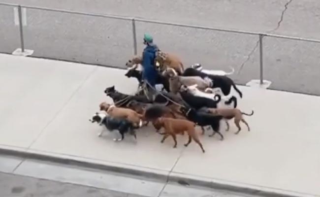 अपने पेट डॉग को टहलाते हुए आपने कई लोगों को देखा होगा. लेकिन इन दिनों सोशल मीडिया पर एक ऐसा वीडियो ट्रेंड कर रहा है, जिसमें एक शख्स एक दो नहीं बल्कि दर्जनभर से ज्यादा कुत्तों को टहलाता नजर आ रहा है. सोशल मीडिया पर आए दिन जानवरों से जुड़े कई दिलचस्प वीडियोज़ वायरल होते रहते हैं. जिसे देखकर यूजर्स को भी बेहद मजा आता है. कुछ इसी तरह कुत्तों की फ़ौज देखकर इंटरनेट पर इस वीडियो को नेटजंस बेहद पसंद कर रहे हैं. आइए आपको भी दिखाते हैं, इस शख्स का अजब गजब वीडियो जो एक साथ इतने कुत्तों को घुमाने निकला.