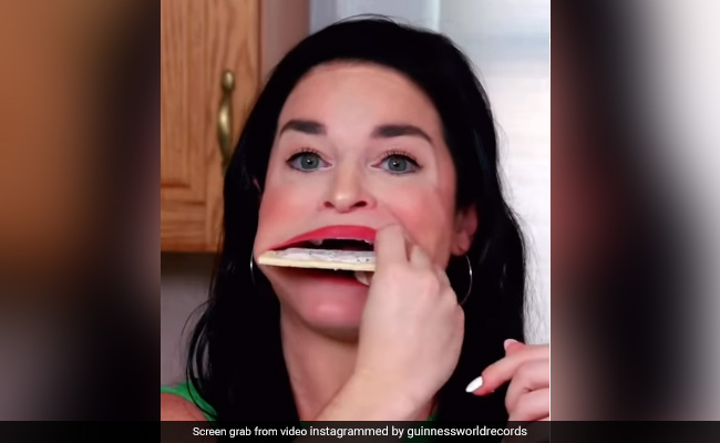 Woman With Largest Mouth In The World: जहां आम इंसान को बर्गर हो या सेब, किसी भी बड़ी चीज को छोटे-छोटे टुकड़ों में या फिर बाइट लेकर खाना पड़ता है, वहां एक महिला खाने वाली इन बड़ी से बड़ी चीजों को एक साथ पूरा का पूरा ही निगल जाती है. वीडियो में देखा जा सकता है कि, कैसे महिला एक बड़े से सेब को एक बार में ही मुंह में रख लेती है. इसी तरह वीडियो में बर्गर हो या फिर कोई चॉकलेट, कुकीज महिला एक बार में ही इसे खाती नजर आती है. गिनीज बुक ऑफ वर्ल्ड रिकॉर्ड्स (Guinness Book of World Records) ने दुनिया के सबसे चौड़े मुंह (Largest Mouth Gap) वाली महिला का हैरान करने वाला वीडियो शेयर किया है, जिसे देखकर हर कोई दंग है.