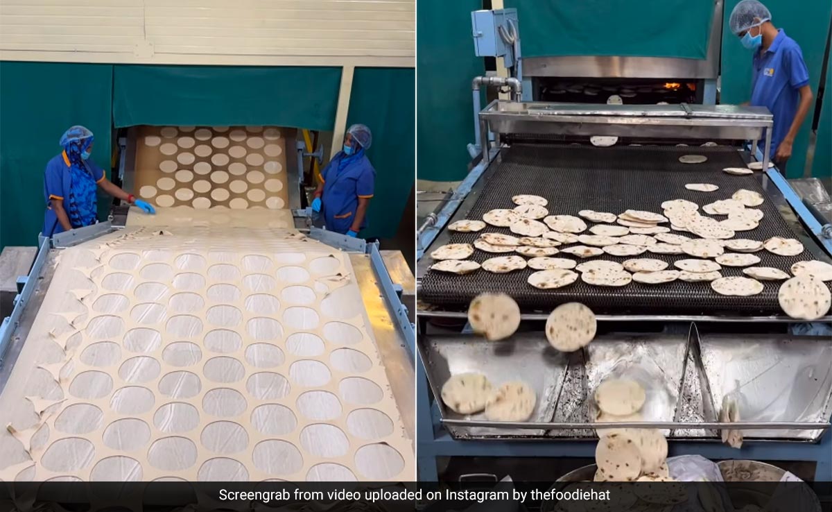 इंस्टाग्राम पर thefoodiehat नाम के अकाउंट से शेयर हुए इस वीडियो में एक आदमी एक मशीन में गेहूं का आटा और पानी मिला रहा है. इसके बाद वह इसमें एक डिब्बे से निकालकर तेल भी मिलाता है. एक बार आटा तैयार हो जाने के बाद, इसे मशीन में ही चपटा किया जाता है और फिर एक मशीन में कटर की मदद से रोटियों को गोल-गोल काट लिया जाता है. आखिर में ये रोटियां एक मशीन पर जाती हैं, जहां आग में इन्हें सेंका जाता है. तैयार रोटियां आखिर में जाकर प्लास्टिक की बाल्टियों में गिरती नजर आती हैं.