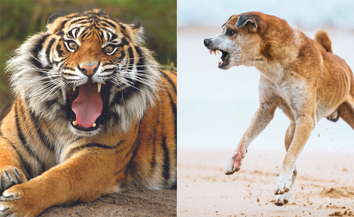 बाघ ने कुत्ते पर किया हमला