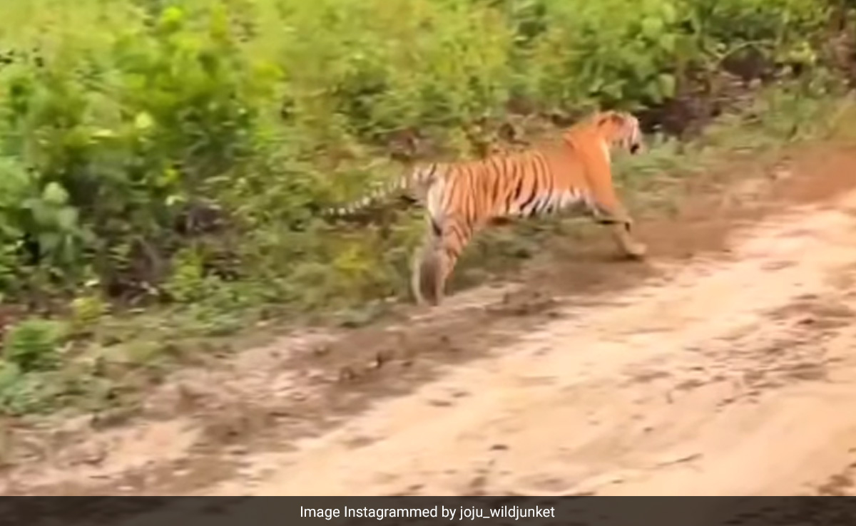 यह क्लिप इंस्टाग्राम पर 'जोजू वाइल्डजंकेट' (Joju Wildjunket) हैंडल से पोस्ट की गई थी. इसमें सफ़ारी पर कई लोगों को वन्य जीवन की खोज करते हुए दिखाया गया है. तभी एक बाघ बाहर निकलता है और जोर से दहाड़ता है.