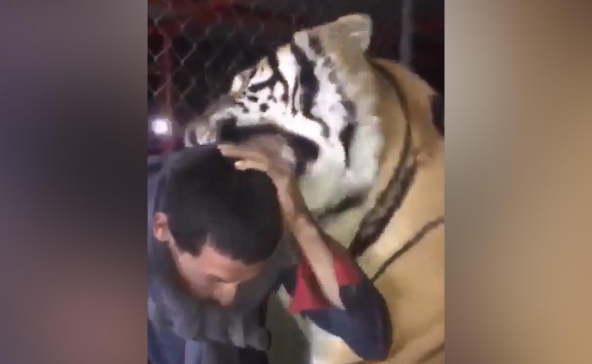 सोशल नेटवर्किंग साइट एक्स पर Crazy Clips नाम के अकाउंट से शेयर हुए इस वीडियो को देख रोंगटे खड़े हो जाते हैं. वीडियो में देखा जा सकता है कि टाइगर के पिंजरे के अंदर उसके साथ एक दुबला-पतला सा शख्स खड़ा है. टाइगर अचानक इस शख्स पर झपटता है. वह शख्स के ऊपर चढ़ जाता है और अपने जबड़ों से शख्स के गर्दन को दबोच लेता है. पहले तो शख्स इसे टाइगर का प्यार समझता है और हंसता नजर आता है. लेकिन थोड़ी ही देर में वह चीखने लगता है. शेर अपने दांतों से उसकी गर्दन पर हमला करता दिखता है.