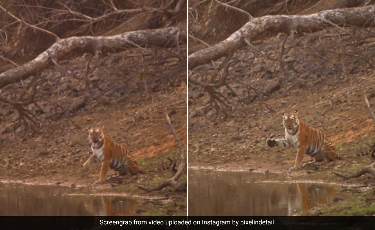 मनमोहक वीडियो में, राजसी बाघिन को एक जलाशय के पास देखा जाता है, जो कैमरे की ओर मुड़ने से पहले अपनी प्यास बुझाती है और लहराते हुए अपना पंजा उठाती है. कैप्शन में लिखा है, “उसकी प्यास बुझाना और हमें एक शाही लहर देना. ताडोबा अंधारी टाइगर रिजर्व में इस शानदार पल को कैद किया.”