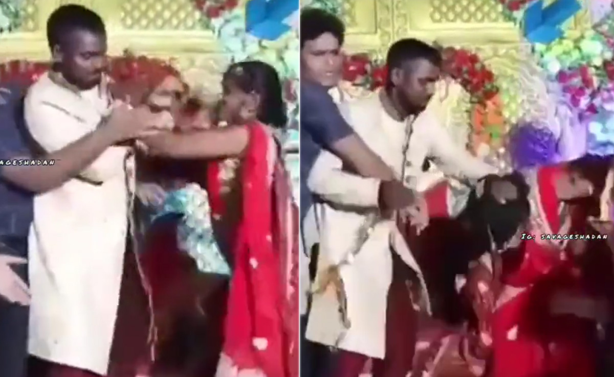 स्टेज पर ही लड़ने लगे दूल्हा दुल्हन