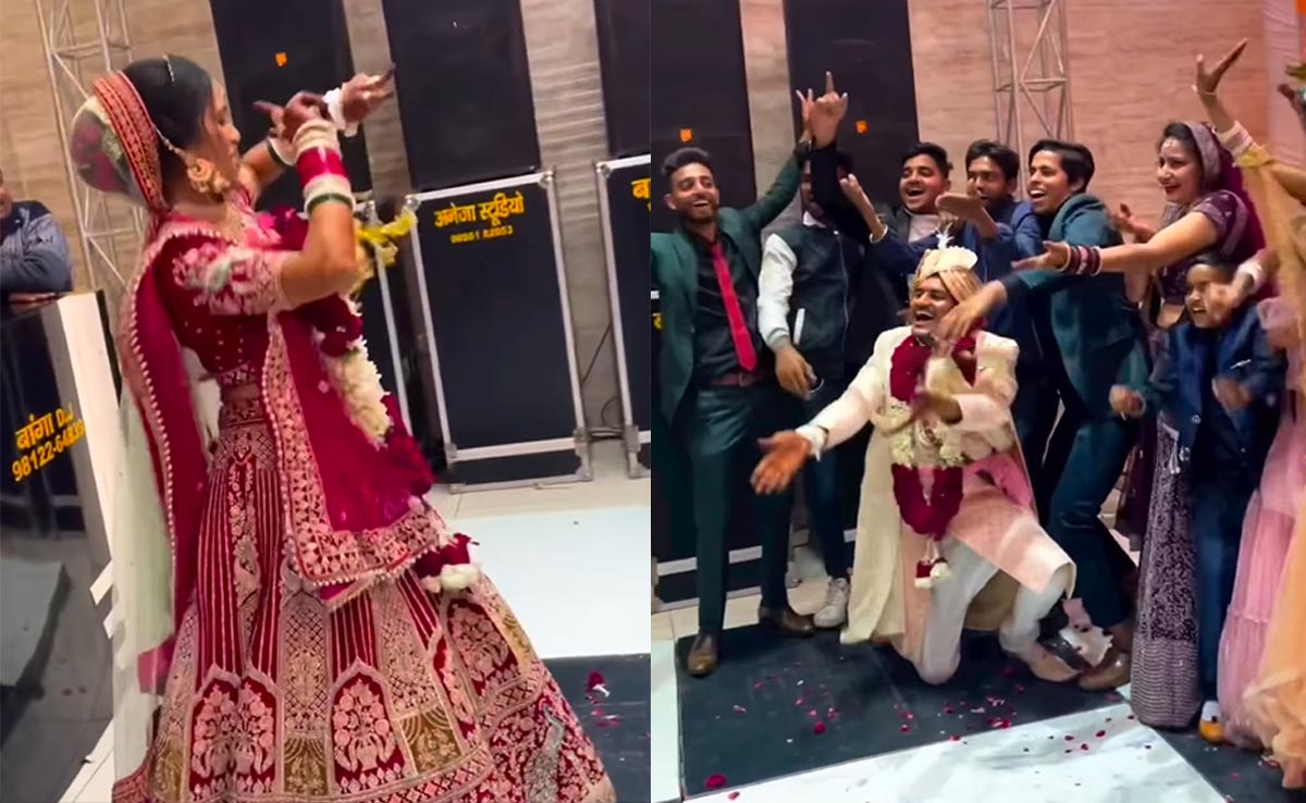 Dulhan Dances On Patli Kamariya Mori: शादी हो या कोई और पार्टी फ्क्शन डांस के तड़के के बिना सब अधूरा सा लगता है. कभी दूल्हे की ग्रैंड एंट्री दिल जीत लेती है, तो कभी दुल्हन का जबरदस्त डांस गर्दा उड़ा देता है. हाल ही में सोशल मीडिया पर दूल्हा-दुल्हन का एक ऐसा ही गजब का डांस वीडियो लोगों को थिरकने पर मजबूर कर रहा है. वीडियो में प्यारी सी दुल्हन को भोजपुरी सॉन्ग 'पतली कमरिया मोरी' पर ठुमके लगाते देखा जा रहा है. इस दौरान दूल्हे के मियां के रिएक्शन देखने लायक होते हैं.
