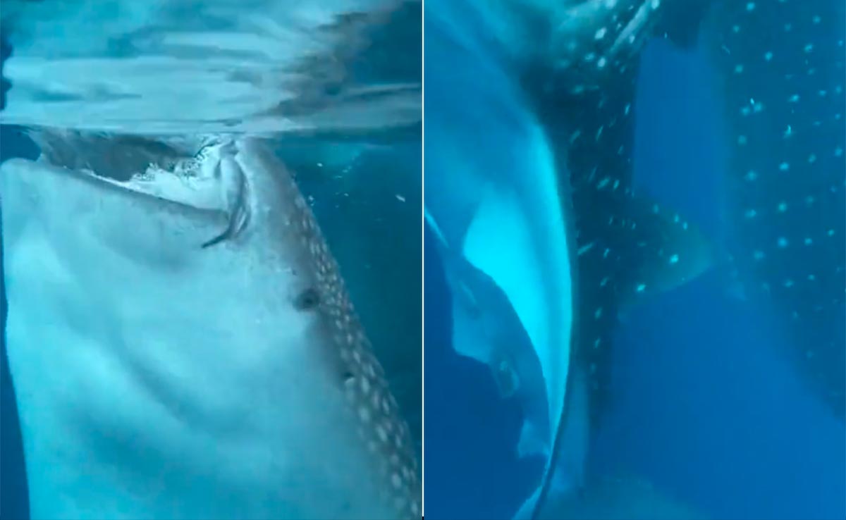 दोनों डाइवर्स को अंडर वॉटर एक बड़ी सी व्हेल शार्क दिखाई देती है, जो मुंह फाड़ कर पानी गटक रही होती है. दरअसल, व्हेल शार्क इसी तरह मुंह फाड़ कर पानी समेत वहां तैर रही छोटी मछलियों को भी डकार जाती हैं. ये उनके खाना खाने का स्टाइल है, जो देखने में थोड़ा डरावना जरूर है, लेकिन कुदरती है. इस वीडियो को देखने के बाद कुछ ट्विटर यूजर्स ने इसे फोटोशॉप वीडियो बताया है, जबकि कुछ यूजर्स ने व्हेल शार्क के खाना खाने की प्रोसेस को भी बताया है और ये सलाह भी दी है कि, डरने की जरूरत नहीं है. एक यूजर ने लिखा है कि, 'व्हेल शार्क किसी को नुकसान नहीं पहुंचाती, उन्हें आपकी मौजूदगी से फर्क भी नहीं पड़ता.' एक यूजर ने लिखा कि, 'ये व्हेल शार्क का लंच टाइम है.'
