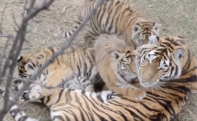 Tiger Cubs Video Viral: मां और बच्चे के बीच प्यार बेहद खास और अटूट होता है. फिर चाहे ये रिश्ता इंसानों के बीच का हो या फिर जानवरों के. इंटरनेट पर अक्सर आपने ऐसे कई वीडियोज देखे होंगे, जिसमें जानवरों के बीच का ममता से भरा प्यार नजर आता है. हाल ही में एक ऐसा ही वीडियो वायरल (Cub tries to scare tigress video) हो रहा है, जिसमें मां के साथ खेलते टाइगर के शावकों (Tiger Cubs) को देखा जा रहा है. यह वीडियो वाकई बेहद खूबसूरत है, जिसमें मां और बच्चों का प्यार हर किसी का ध्यान अपनी ओर खींच रहा है.