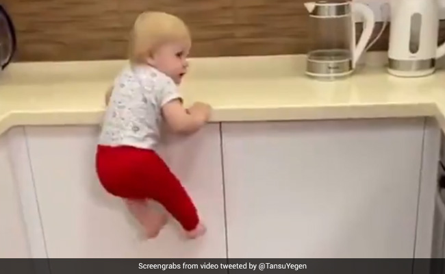 किचन के प्लेटफॉर्म की इस ऊंचाई को देखिए. और जरा इस नन्हें से बच्चे की हाइट देखिए. क्या आपको लगता है कि ये बच्चा इस प्लेटफॉर्म पर चढ़ पाएगा. खासतौर से तब जब बीच में ऐसा कोई सहारा भी नहीं जिस पर पैर रख कर ये बच्चा प्लेटफॉर्म पर चढ़ सके. लेकिन इसकी फुर्ती देखकर आपकी सोच बदल जाएगी. आप पलक भी झपका नहीं सकेंगे और ये बच्चा प्लेटफॉर्म पर चढ़ जाएगा. उसके बाद आप सोचते रहिए कि इन छोटे से हाथों को इतनी ताकत कैसे मिली और कैसे नन्हें कदमों में इतनी जान आ गई जो सरपट ऊपर चढ़ता चला गया. वो भी एक बार नहीं कई बार