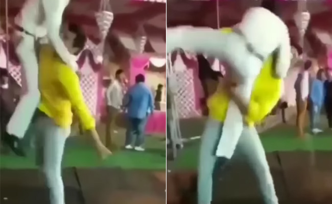 वायरल हो रहे इस मजेदार डांस वीडियो में दो लोगों को शादी में डांस फ्लोर पर अजीबोगरीब तरीके से थिरकते देखा जा सकता है, जिन्हें देखकर आपके भी होश उड़ जाएंगे. देखने में यह वीडियो किसी शादी समारोह का लग रहा है, जहां दो लोग डांस फ्लोर बड़े ही अनोखे तरीके से डांस करते नजर आ रहे हैं. वीडियो में डांस फ्लोर पर दो लोग 2010 में आई फिल्म 'दबंग' से सलमान खान के हिट टाइटल ट्रैक पर डांस करते दिखाई दे रहे हैं. इस डांस में मजेदार बात ये है कि इस दौरान एक शख्स दूसरे शख्स को पटक-पटक डांस करता नजर आ रहा है. इस वीडियो में ये डांस फ्लोर कम कुश्ती का मैदान ज्यादा लग रहा है.