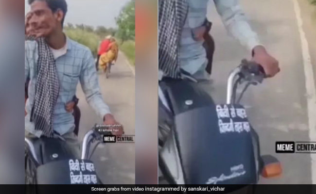Husband Jokes On Wife: सोशल मीडिया पर पति-पत्नी से जुड़े कई वीडियो देखने को मिलते रहते हैं. इन वीडियो को देखने के बाद लोग बहुत ही ज्यादा खुश रहते हैं. अमूमन ये होता है कि लोग पति-पत्नी से जुड़ी चीज़ों को देखना पसंद करते हैं. अभी हाल ही में सोशल मीडिया पर एक वीडियो वायरल हो रहा है. इस वीडियो में देखा जा सकता है कि एक पति ने अपनी पत्नी को लेकर अपनी बाइक पर मजाक-मजाक में ऐसी लाइनें लिखवा दीं, जिसे देख आप भी हंस-हंस कर लोटपोट हो जाएंगे. इस वीडियो को देखने के बाद लोग अपनी हंसी को रोक नहीं पा रहे हैं. इस वीडियो को सोशल मीडिया पर शेयर करते हुए कमेंट भी कर रहे हैं.