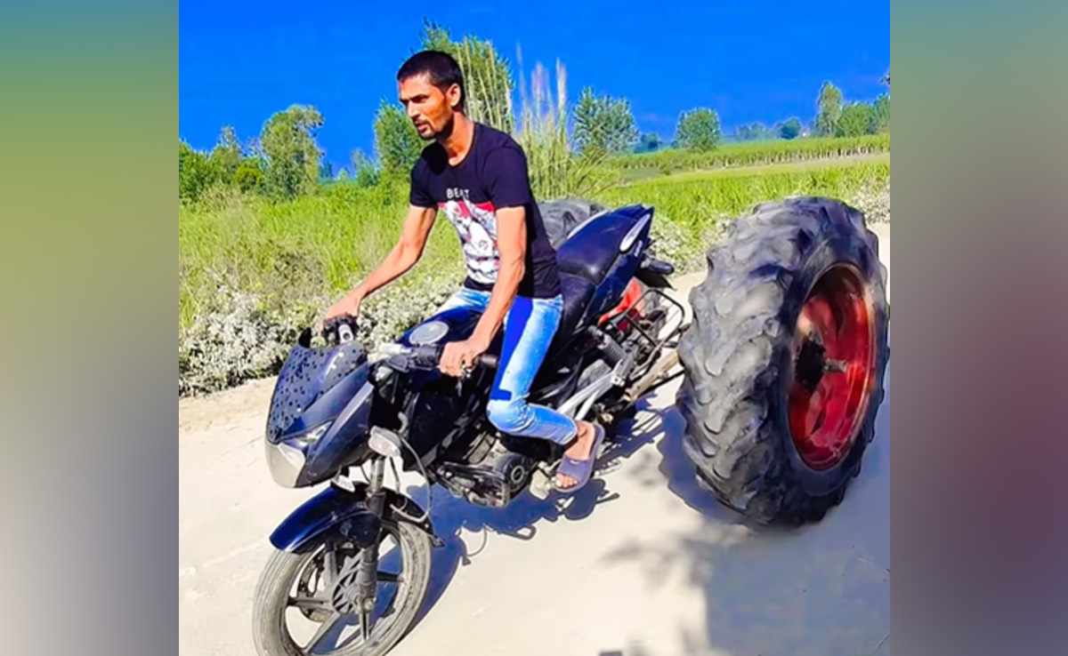 Bike Attached With Tractor Tyre Turned Into Vehicle: जुगाड़ के मामले में दुनियाभर में भारतीय लोगों का कोई मुकाबला नहीं है. इस बात का अंदाजा इस वायरल वीडियो (Viral Video) को देखकर लगाया जा सकता है, जिसमें एक शख्स ने अपनी बाइक के साथ जो किया उसे देखकर लोग समझ ही नहीं पा रहे हैं कि, उसने ऐसा कैसे और क्यूं किया. कई बार लोग देसी जुगाड़ (Desi Jugaad) लगाकर ऐसी चीजें बना देते हैं, जिसके बारे में कल्पना भी नहीं की जा सकती. ऐसा हम नहीं कह रहे हैं, बल्कि इंटरनेट पर वायरल हो रहा एक वीडियो इस बात का सबूत है.