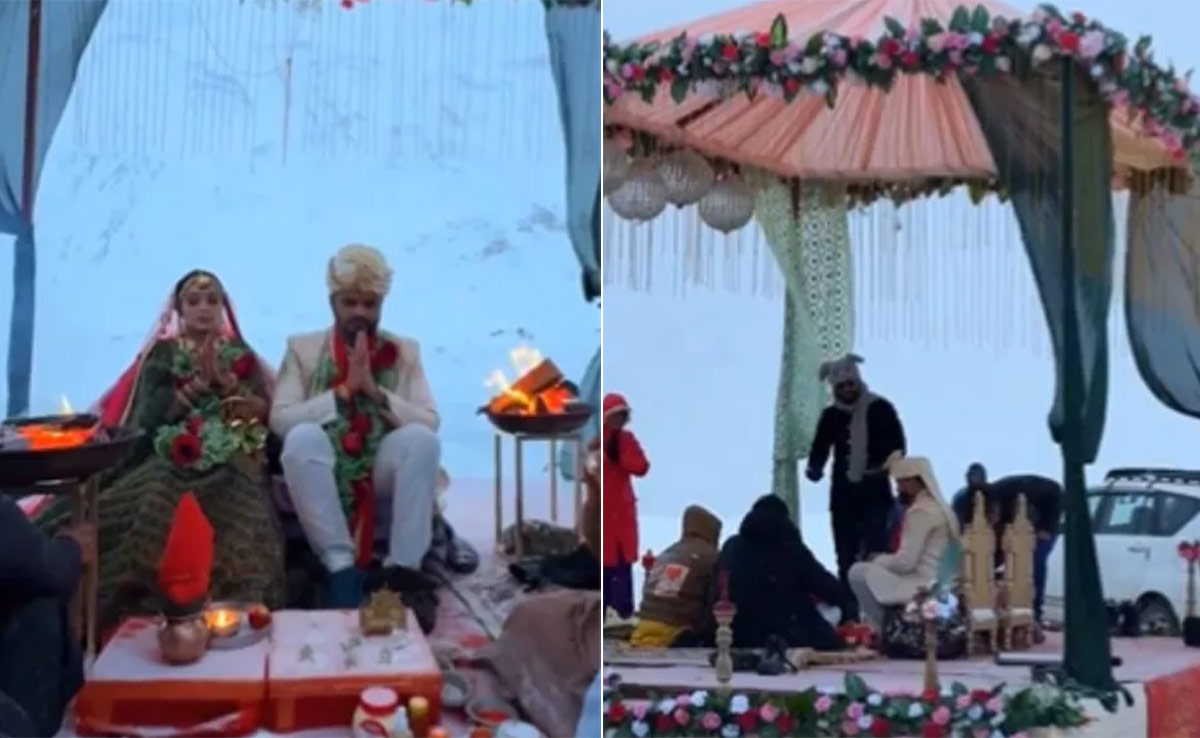 Viral Wedding Video: शादी का दिन दूल्हा हो या दुल्हन दोनों के लिए बेहद खास होता है. इस दिन को और भी ज्यादा स्पेशल और यादगार बनाने के लिए लोग क्या कुछ नहीं करते. यूं तो आजकल शादियों में लोग कई सारे नए ट्रेंड को फॉलो करने में लगे हैं. जहां कई कपल्स शादी से पहले प्री-वेडिंग शूट कराते हैं, तो वहीं कुछ हर फंक्शन का ऐसा सेटअप लगवाते हैं, जिसे लोग बार-बार देखने को मजबूर हो जाते हैं. वहीं कुछ लोग ऐसे भी हैं, जो Destination Weddings का ट्रेंड भी काफी फॉलो करते हैं. हाल ही में एक ऐसे ही डेस्टिनेशन वेडिंग का वीडियो इंटरनेट पर लोगों का ध्यान खींच रहा है. वीडियो में देखा जा सकता है कि, कैसे Lahaul-Spiti की हसीन वादियों में भारी बर्फबारी के बीच दूल्हा-दुल्हन माइनस 25 डिग्री तापमान में शादी के बंधन में बंधते नजर आ रहे हैं.