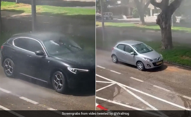 वायरल वीडियो में दरअसल, कुछ पानी की फुहारे दिख रही हैं. झर-झर करता ये पानी दरअसल, एक खराब स्प्रिंकलर से निकल रहा है, लेकिन जुगाड़ियों को देखिए उन्होंने इस एक खराब स्प्रिंकलर को कार वॉश बना लिया. जी हां, स्प्रिंकलर से बहते पानी से लोग अपनी-अपनी गाड़ियों को धोते नजर आते हैं. पहले एक ब्लैक कार आती है, तो चालक वाइपर चालू कर बड़े ही आराम से कार को साफ कर लेता है. इसके बाद ग्रे, रेड समेत कई कार आती जाती हैं और अपनी सफाई करवाती जाती हैं. गर्मी में धूल और मिट्टी पड़ी गाड़ियों को ये 'कार वॉश' सफाई का आसान साधन लगता है.