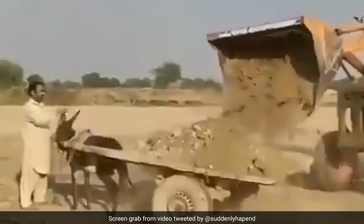 ट्विटर पर इस वीडियो को शेयर किया गया है. वीडियो में आप देख सकते हैं कि, कैसे काला रंग का एक छोटा सा गधा अपने मालिक के साथ खड़ा है. वहीं उनके पीछे एक जेसीबी पर खूब सारा मलबा है, जो गधे के पीछे लगी ट्रॉली पर डाला जा रहा है, लेकिन जैसे ही इसका वजन गधे के वजन से ज्यादा हो जाता है, तो गधा हवा में झूल जाता है और ऊपर उठ जाता है. इसके बाद भी मालिक से सहन नहीं हुआ और वो गधे को वजन उठाने के लिए उसे नीचे करता दिखता है.