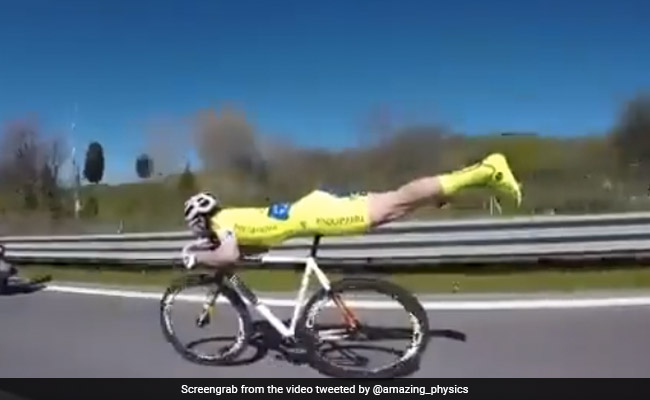 ट्विटर पर यह वीडियो शेयर किया है अमेजिंग फिजिक्स नाम के ट्विटर हैंडल ने. इस वीडियो में साफ दिखाई दे रहा है कि साइकिल रेस जारी है, जिसे जीतने के लिए राइडर्स अपना दिल और जान लगा रहे हैं. इस रेस में एक साइकिल सवार सबसे पीछे नजर आता है. पीले रंग की ड्रेस में दिखाई दे रहा ये शख्स पहले तो कुछ देर दूसरे रेसर्स की तरह साइकिल के पैडल मारता है, लेकिन ये कोशिश वो कुछ ही देर के लिए करता है, क्योंकि रेस जीतने का उसका प्लान कुछ अलग है.