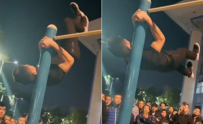 वीडियो में आगे कुछ ही सेकेंड्स में ऊपर उठते हुए युवक केवल अपने हाथों के सहारे ही पोल के आखिरी छोर तक पहुंच जाता है. इतना ही नहीं ऊपर पहुंचकर युवक यहां कुछ देर ठहरता है और फिर अपने पैरों को हवा में कुछ इस तरह चलाता है, जैसे कोई दीवार पर चढ़ रहा हो. इसके बाद वो पोल से नीचे उतर जाता है. यहां आसपास खड़े लोग इस कारनामे को देखकर हैरत में पड़ जाते हैं और कुछ लोग इस नज़ारे को अपने मोबाइल में कैद कर लेते हैं.