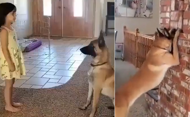 वीडियो में आगे बच्ची डॉगी को गिनती करने के लिए कहती है और खुद दूसरे कमरे में जाकर छिप जाती है. वहीं डॉगी भी पूरी ईमानदारी से सामने बनी एक शोकेसनुमा दीवार पर सामने दोनों पैर रखकर और अपना सिर नीचे झुकाकर खड़ा हो जाता है, जैसे वो आंख बंद करके 1 से लेकर 10 तक गिनती कर रहा हो. इसके बाद डॉगी पीछे मुड़कर देखता है और फिर बच्ची को ढूंढने के लिए कमरे में चला जाता है.