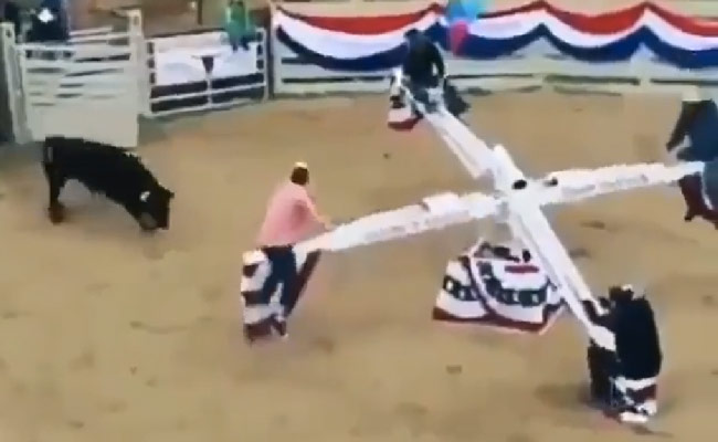 आपने भी सी सॉ खेल खूब खेला होगा. इस झूले पर एक शख्स ऊपर जाता है तो उसका साथी नीचे आता है. लेकिन सोचिए कि आप इस झूले पर बैठे हो और नीचे खूंखार बुल आपकी ताक लगाए बैठा हो कि कब आप उसकी चपेट में आएं और वह अपने गुस्से को शांत करे. ट्विटर पर सामने आए इस वीडियो में कुछ ऐसा ही नजर आता है. बेहद गुस्से से भरा एक बुल तेज रफ्तार से उस झूले की ओर बढ़ता है जिस पर चार लोग बैठे हुए नजर आ रहे हैं. बुल जैसे ही एक शख्स पर झपट्टा मारता है वह ऊपर की ओर उठ जाता है और फिर बारी-बारी बुल चारों के पास जाता है, लेकिन कोई भी व्यक्ति उसका शिकार नहीं बनता. बुल को देख ऐसा लगता है कि अगर कोई भी शख्स इस समय उसकी चपेट में आए तो वह उसके शरीर के चिथड़े उड़ा देगा.