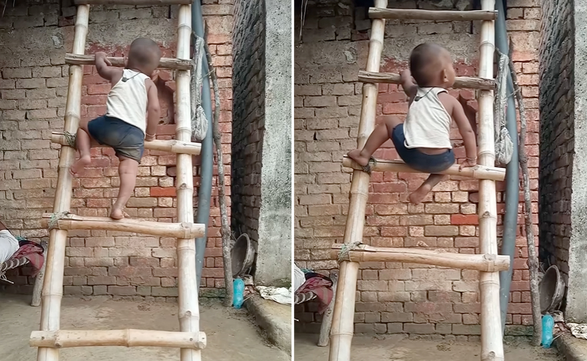 Little Boy Climbing Ladder: सोशल मीडिया पर बच्चों से जुड़े वीडियोज लोग खूब देखना और शेयर करना पसंद करते हैं. इन वीडियोज में कभी बच्चों की मासूमियत दिल लूट लेती है, तो कभी उनका शरारत भरा अंदाज ध्यान खींच लेता है. हाल ही में एक बच्चे से जुड़ा वीडियो देखकर लोग हैरत में हैं. इस वीडियो में एक छोटा सा बच्चा लकड़ी की सीढ़ी चढ़ते देखा जा रहा है.