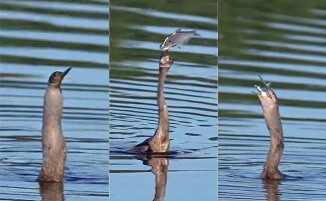वीडियो में देखा जा सकता है कि कैसे गहरे में पानी में यह पक्षी अपनी लंबी सी गर्दन को ऊपर की ओर उठाकर मछली का शिकार करता है. यह पहले मछली को अपनी चोंच में दबोच कर रखता है और फिर उछालते हुए धीरे-धीरे इसे निगलता है. 5 से 6 इंच लंबी इस मछली तो निगलने में इस पक्षी को महज कुछ सेकंड लगते हैं.
