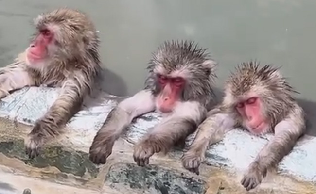 वायरल हो रहे इस वीडियो में तीन बंदरों को एक तालाब में आराम फरमाते देखा जा रहा है. इस दौरान तीनों बंदर तालाब में नहाने के बाद, उसमें से बाहर निकलने का नाम ही नहीं लेते हैं. वीडियो में आगे तीनों बंदर रिलैक्स मूड में किनारे आकर मजे से आराम फरमाने लगते हैं. इस बीच वे झपकी लेते हुए भी नजर आते हैं. वीडियो में इन तीनों का सुकून देखकर इनकी खुशी का अंदाजा लगाया जा सकता है.