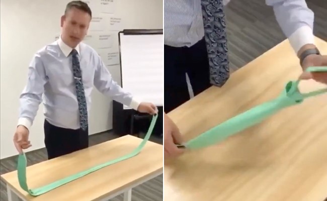 वीडियो में एक शख्स नजर आ रहा है, जो शायद अपने दफ्तर में ही खड़ा है, उसने फॉर्मल शर्ट-पैंट और टाई पहनी हुई है. ये शख्स टेबल पर एक हरे रंग की टाई को रख कर कमाल के ट्रिक के साथ इसे बांधना सिखा रहा है. टाई के एक हिस्से में नॉट बांध कर वह फटाफट इसे बिल्कुल परफेक्ट तरीके से बांध कर तैयार कर लेता है. इसे देख टाई बांधना बच्चों का खेल नजर आता है. सोशल मीडिया यूजर्स का भी यही कहना है कि ऐसे फटाफट और बिल्कुल परफेक्ट टाई बांधना कमाल की कला है. कई यूजर्स ने एक वीडियो को पोस्ट करने के लिए पोस्ट करने वाले को थैंक्स भी कहा है.
