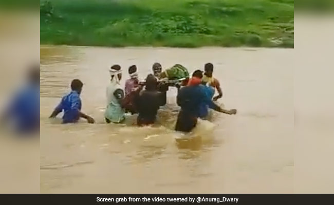 दरअसल गांव से बहने वाली नदी पर आजतक कोई पुल नहीं बन सका है. इस वजह से बारिश के दिनों में लोगों का आवागमन बाधित होता रहता है. बुधवार शाम को ग्रामीणों ने जान जोखिम में डालकर एक गर्भवती महिला को खटिया में लिटाकर नदी पार करवाई. कई सालों से यह समस्या होने के बाद भी अब तक प्रशासन की ओर से कोई पहल नहीं हो सकी है.