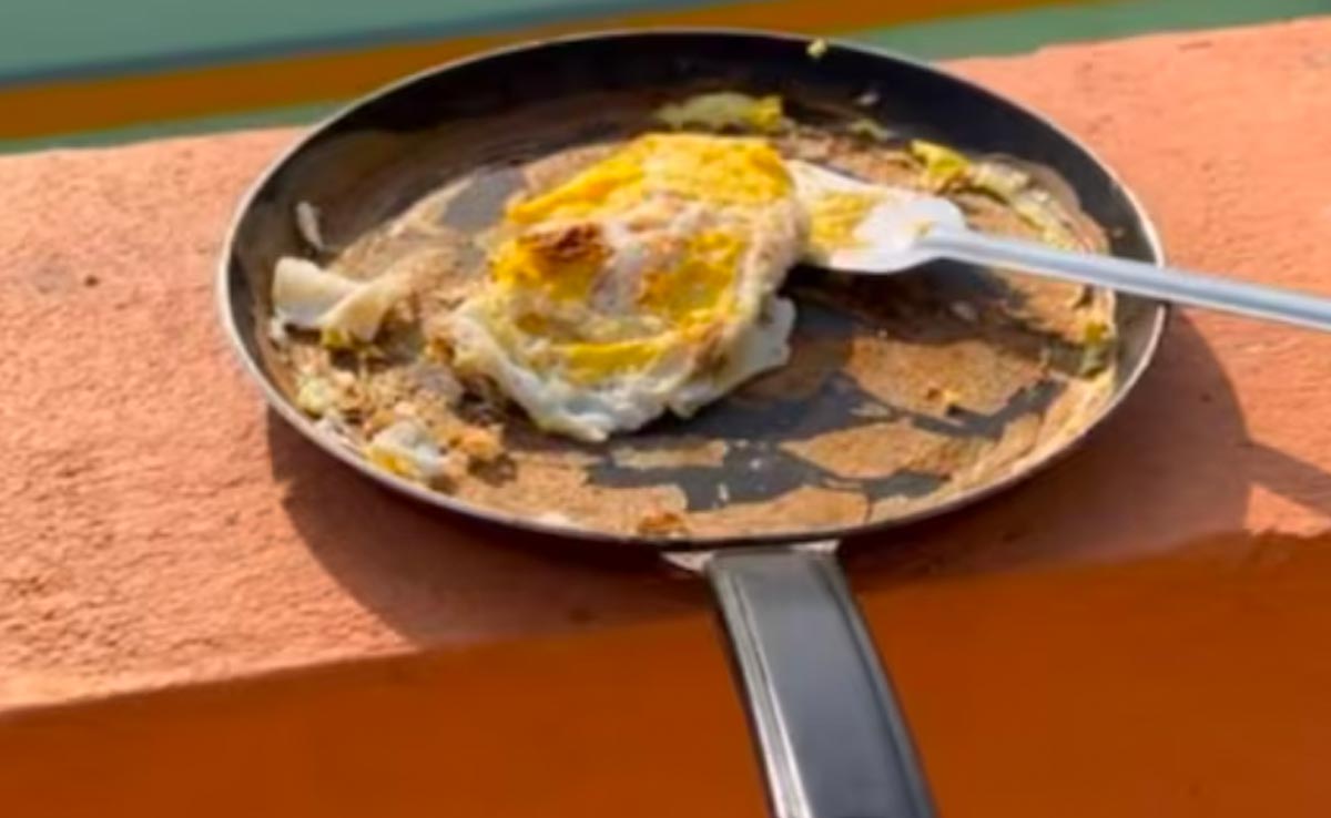 फेसबुक पर शेयर हुए वीडियो में एक शख्स बंगाली भाषा में बता रहा है कि, उसने एक फ्राइंग पैन को खुली छत पर रखा है. वीडियो में देखा जा सकता है कि, धूप में पैन को शख्स ने रखा है, जहां सूरज की रोशनी सीधे पड़ रही है. धूप में पैन पूरी तरह से गर्म हो जाता है. इसके बाद वीडियो में दिख रहा शख्स एक अंडा लेकर पैन में तोड़ता है और उसे पैन में पूरी तरह से फैला देता है. अंडा डालने के कुछ समय बाद ही वह पकना शुरू हो जाता है. देखते ही देखते अंडा पक कर ऑमलेट बन जाता है. इसके बाद ये शख्स ऑमलेट चख कर बताता है कि ऑमलेट एकदम परफेक्ट बना है.