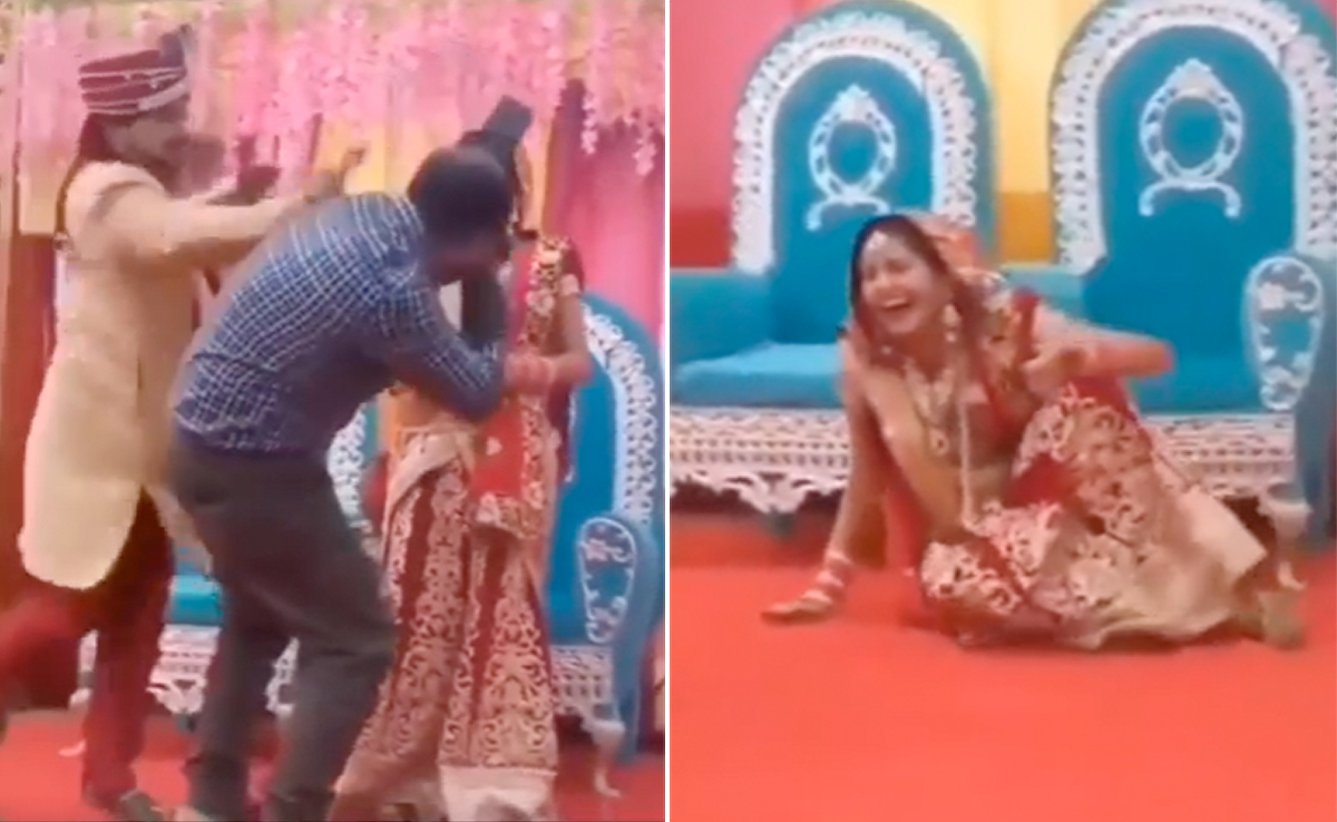 Groom Slapped Photographer During Photoshoot: शादी का फंक्शन हो या न हो, लेकिन सोशल मीडिया पर शादी से जुड़े वीडियोज वायरल होते रहते हैं. इनमें से कुछ वीडियोज दिल को छू जाते हैं, तो कुछ वीडियोज हंसा-हंसा कर बुरा हाल कर देते हैं. हाल ही में एक ऐसा ही वीडियो सामने आ रहा है, जिसमें दुल्हन को पोज़ बनवा रहे फोटोग्राफर पर दूल्हे 'मियां' का गुस्सा फूटते हुए नजर आ रहा है. इस दौरान दूल्हा कुछ ऐसी हरकत कर देता है, जिसे देखकर वहां मौजूद हर कोई हक्का-बक्का रह जाता है. वहीं दूसरी तरफ दुल्हन दूल्हे के कारनामे को देखकर हंस-हंसकर लोटपोट हो जाती है. वीडियो को देखने के बाद आप भी अपनी हंसी कंट्रोल नही कर पाएंगे.