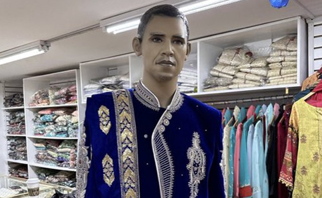 इस तस्वीर के वायरल होने की वजह पुतले का चेहरा है, जो अमेरिका के पूर्व राष्ट्रपति बराक ओबामा से मिलता-जुलता है. दरअसल, ग्राहकों को अपनी दुकान में बुलाने के लिए दुकानदार कई तरीके अपनाते हैं. कुछ बड़े बैनर्स का सहारा लेते हैं, तो कुछ इसके लिए बंपर डिस्काउंट का रास्त चुनते हैं. फेस्टिव सीजन में अक्सर दुकानदार ग्राहकों का ध्यान खींचने के लिए दुकान के बाहर पुतलों को शानदार कपड़े पहनाकर खड़ा कर देते हैं, जिसे देखकर कई बार ग्राहक दुकान का रूख कर लेते हैं. ऐसे ही एक पुतले की तस्वीर इन दिनों सोशल मीडिया पर छाई हुई है, जिसकी यूजर्स खूब मौज ले रहे हैं.