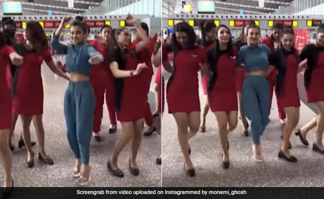 वायरल हो रहे इस वीडियो में बंगाली अभिनेत्री मोनामी घोष डांस करती नजर आ रही हैं, जिनके साथ ताल में ताल में मिलाती कई एयरहोस्टेस थिरकती नजर आ रही हैं. वीडियो में बज रहा गाना बेलाशूरू फिल्म (film Belashuru) का लोकप्रिय बंगाली गीत (Bangla song Tapa Tini) तप तिनी है, जिस पर सभी बेहतरीन स्टेप्स और रिदम के साथ नाचती नजर आ रही हैं.