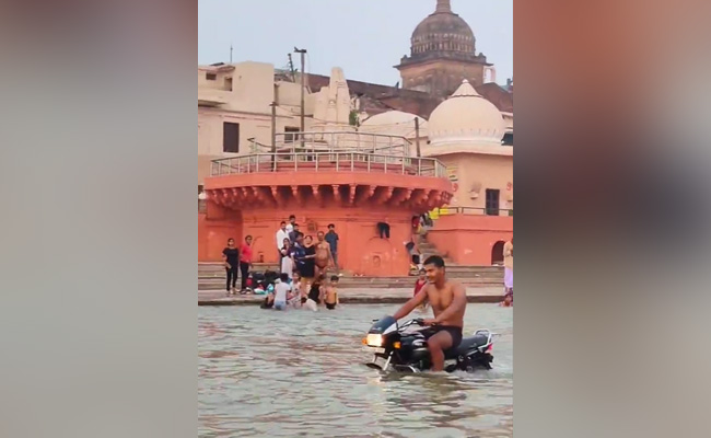 सोशल मीडिया पर फेमस होने के लिए लोग न जाने क्या-क्या करते हैं. इंटरनेट के आने से हमारे कई वीडियो वायरल भी हो जाते हैं. अभी हाल ही में हमने एक वायरल वीडियो देखा था, जिसमें एक पति अपनी पत्नि को किस करते हुए नज़र आ रहा था. उसके बाद स्थानीय लोगों ने पति की मारा था. ये घटना अयोध्या की थी. देखा जाए तो अयोध्या एक धारमिक स्थान हैं. यहां श्रद्धालु आकर सरयू नदी में डुबकी लगाते हैं और ईश्वर से अपने लिए प्रार्थना करते हैं, वहीं कुछ लोग खुद को अलग दिखाने के चक्कर में कुछ ऐसा कर देते हैं, जिससे श्रद्धालुओं को बहुत ही ज्यादा दिक्कत होती है. अभी हाल ही में सोशल मीडिया पर एक वीडियो वायरल हुआ, जिसमें देखा जा सकता है कि एक शख्स सरयू नदी में बाइक चला रहा है. इस शख्स का वीडियो सोशल मीडिया पर वायरल भी हुआ है. इस वायरल वीडियो में आप एक शख्स को पवित्र घाट 'राम की पैड़ी' पर सरयू नदी के अंदर बाइक (Bike) चलाते देख सकते हैं.