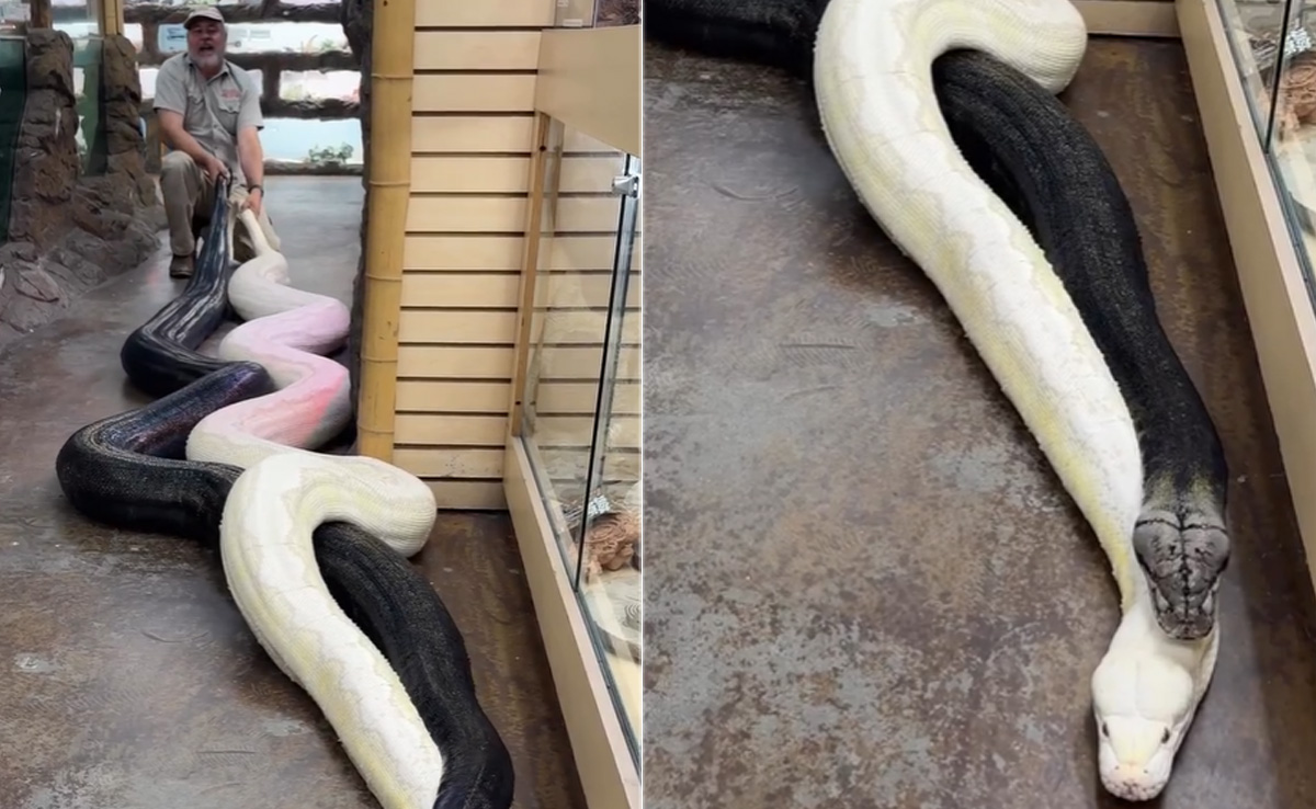 इस वीडियो में एक शख्स दो विशाल अजगरों की पूंछ खींचते हुए दिखाई दे रहे हैं. हैरानी की बात तो यह है कि, ऐसा करते समय शख्स के चेहरे पर थोड़ा सा भी डर देखने को नहीं मिल रहा है, बल्कि चेहरे पर खिली मुस्कान लोगों को हैरत में डाल रही है. शख्स बड़े आराम से उनकी पूंछ खींच रहा है, जैसे ये उसके रोज का काम है. दरअसल, वीडियो में दिख रहे शख्स अमेरिकी YouTuber Jay Brewer, जो रेप्टाइल ज़ू प्रागैतिहासिक इंक के संस्थापक और अध्यक्ष हैं, ने हाल ही में इंस्टाग्राम पर एक वीडियो पोस्ट किया है, जिसमें उन्हें दो विशाल अजगरों की पूंछ पकड़कर खींचते हुए देखा जा रहा है. वीडियो में दिख रहे इन विशाल अजगरों की पूंछ जे अपने हाथ से पकड़े नजर आ रहे हैं, जो फर्श पर कुंडली मारकर लेटे नजर आ रहे हैं.