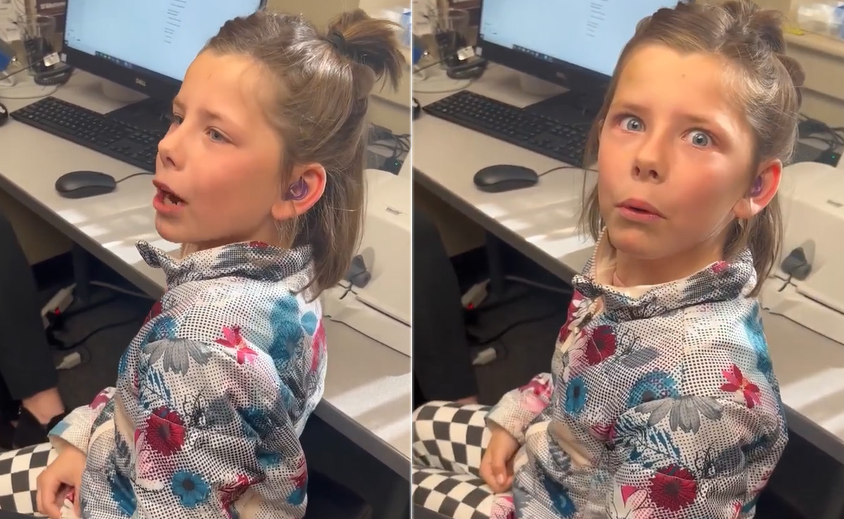 Deaf Woman Hears For The First Time: इंसान पैदा होने के कुछ महीनों बाद ही बोलना सीख लेता है, छोटे-छोटे बच्चे जब तुतलाकर अपनी बात कहते हैं, तो कितने प्यारे लगते हैं, लेकिन ये सौभाग्य सभी बच्चों को नहीं मिल पाता. ऐसी ही एक बच्ची के लिए उसके हियरिंग एड तब लकी साबित हुए, जब उसने पहली बार अपनी ही आवाज सुनी. ये बच्ची करीब आठ से दस साल के बीच की उम्र की है और ये जन्म से ही सुन नहीं सकती थी, लेकिन जब इसे पहली बार हियरिंग एड मिले तो ये अपनी ही आवाज सुनकर ऐसी चौंक गई कि, मतवाली होकर तरह-तरह की आवाज निकालने लगी. यूजर इस बेहद प्यारे वीडियो को देखकर भाव-विभोर हो रहे हैं और बच्ची की खुशी देखकर सोशल मीडिया (social media) पर भी खुशी की लहर दौड़ गई है.