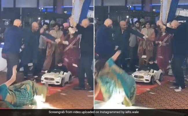 इंस्टाग्राम पर ielts.wale नाम से बने पेज पर यह वीडियो शेयर किया गया है. इस वीडियो में आप देख सकते हैं कि एक छोटा सा बच्चा बेबी कार में बैठकर एंट्री कर रहा है. इस दौरान कुछ लोग उसके ऊपर नोटों की बारिश कर रहे हैं, तो नीले रंग की साड़ी पहने एक आंटी उसका वीडियो बना रही हैं. जैसे-जैसे बच्चा आगे बढ़ता है आंटी पीछे-पीछे बढ़ती जाती हैं और देखती भी नहीं है कि पीछे एक फायर लैंप रखा हुआ है और उससे टकराकर सिर के बल धड़ाम से गिर जाती हैं. हालांकि, उन्हें ज्यादा चोट नहीं आई और वक्त रहते वो संभल गईं, नहीं तो बड़ी अनहोनी हो सकती थी.