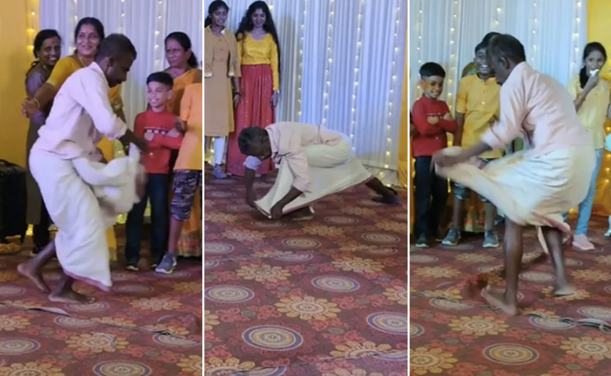वीडियो में शख्स (Elderly Man Dancing) एक से बढ़कर एक मूव्स दिखाते हुए बड़ी ही फुर्ती से कूद-कूदकर डांस करता नजर आता है. इस वीडियो को अब तक लाखों बार देखा जा चुका है. वीडियो देख चुके यूजर्स इस पर तरह-तरह के मजेदार रिएक्शन दे रहे हैं. एक यूजर ने लिखा, 'ये रियल लुंगी डांस है.' दूसरे यूजर ने लिखा, 'लुंगी से स्टेज का माप लेने की निंजा टेक्निक.' तीसरे यूजर ने लिखा, 'अंकल का लुंगी डांस बेहतरीन है.'