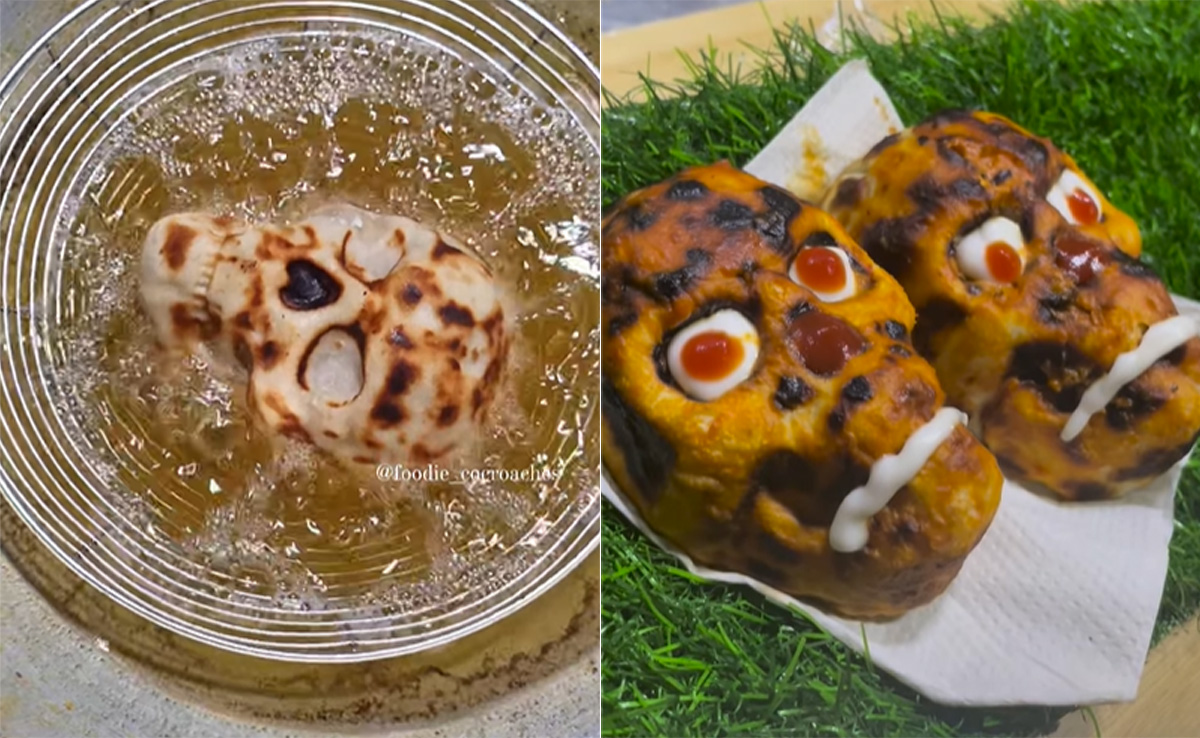 स्कल पिज्जा के वीडियो Foodie_cacroaches अकाउंट से इंस्टाग्राम पर शेयर किया गया है, जिसके कैप्शन पर लिखा है, 'कपाल पिज्जा, एक डरावनी खुशी.' वीडियो में सबसे पहले एक स्ट्रीट फूड का स्टॉल नजर आता है, जिस पर ‘पिज्जा स्कल' लिखा है. उसके बाद खोपड़ीनुमा पिज्जा को डीप फ्राई किया जाता है और उस पर लाल रंग का सॉस लगाया जाता है. फिर आंख और मुंह बनाने के लिए मेयोनीज का यूज किया जाता है और खोपड़ीनुमा पिज्जा डरावने आर्ट का रूप ले लेता है. वीडियो के कैप्शन के अनुसार, ये पिज्जा बिलासपुर में 100 रुपए में मिल रहा है.