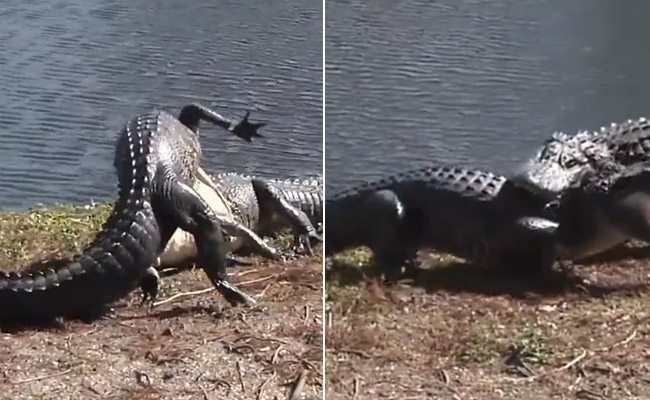 वीडियो में आप देखेंगे कि कैसे एक मगरमच्छ अपने जबड़ों से दूसरे मगरमच्छ की गर्दन जकड़ लेता है. इस दौरान दोनों मगरमच्छ एक-दूसरे से लड़ते-भिड़ते पानी के अंदर चले जाते हैं. सोशल मीडिया प्लेटफॉर्म ट्विटर (Twitter) पर इस वीडियो को शेयर किया गया है. बता दें कि इस वीडियो को अभी तक 1.66 लाख बार देखा जा चुका है, जबकि सैकड़ों लोगों ने इस वीडियो को लाइक भी किया है. वहीं, वीडियो को देखने के बाद यूजर्स तरह-तरह की प्रतिक्रियाएं दे रहे हैं.