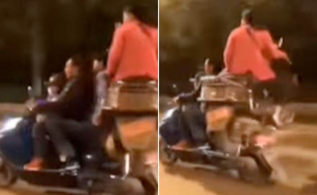 इंस्टाग्राम पर आए दिन कुछ ना कुछ वायरल होता रहता है. कुछ इसी तरह से यह वीडियो भी वायरल हो रहा है, जिसमें कुछ युवक स्कूटर पर गजब के स्टंट करते नजर आ रहे हैं. इस वीडियो में आप देखेंगे कि एक स्कूटर पर तीन शख्स बैठे हुए हैं और उसके ऊपर एक और स्कूटर रखा हुआ है, जिसके ऊपर भी कोई बैठा हुआ है और रोड पर बड़े आराम से ही चारों गाड़ी चलाते हुए नजर आ रहे हैं. इनके पीछे एक स्कूटर और आ रहा है जिसमें 4 लोग सवार हैं.
