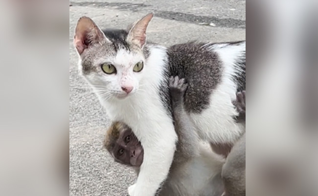 इस वायरल वीडियो में एक बिल्ली है और उस बिल्ली से चिपका हुआ एक नन्हा सा बंदर है. बिल्ली सरपट चली जा रही है और बंदर उससे ठीक वैसे ही चिपका है जैसे अपनी मां से चिपका हुआ हो. रास्ते रोकने वाले या छेड़ने वाले को बिल्ली इस अंदाज में घूरती है, मानो कह रही हो कि दूर ही रहो. इस नन्हें बंदर की बिल्ली एक मां की तरह हिफाजत कर रही है. बिल्ली और बंदर की ये प्यारी सी जुगलबंदी का वीडियो शेयर किया है वायरल होग (viral hog) नाम के इंस्टाग्राम हैंडल ने. पोस्ट शेयर करते हुए वायरल होग ने लिखा है कि अपने परिवार से बिछड़े इस बंदर को बिल्ली ने अडॉप्ट कर लिया है और अब एक मां की तरह उसका ख्याल रखती है.