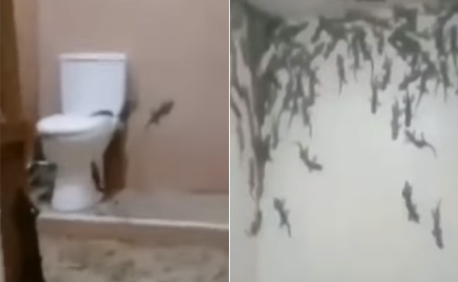 वीडियो में चारों तरफ छिपकलियों का झुंड नजर आ रहा है. इस बाथरूम की चारों दीवारों पर एक के ऊपर एक सैकड़ों छिपकलियां चिपकी हुई हैं. इन्हें देख कर हर कोई ख़ौफ़ज़दा हो रहा है. यह वीडियो इतना डरावना है, जिसे देखने के बाद किसी की भी नींद उड़ जाए. दीवार पर इन सैकड़ों छिपकलियों के झुंड को देखकर ऐसा लग रहा है मानो, जंगल में ढेर सारे सांप लिपटे हुए हैं. इंटरनेट पर वायरल हो रहे इस वीडियो ने हर किसी को डरा दिया है.